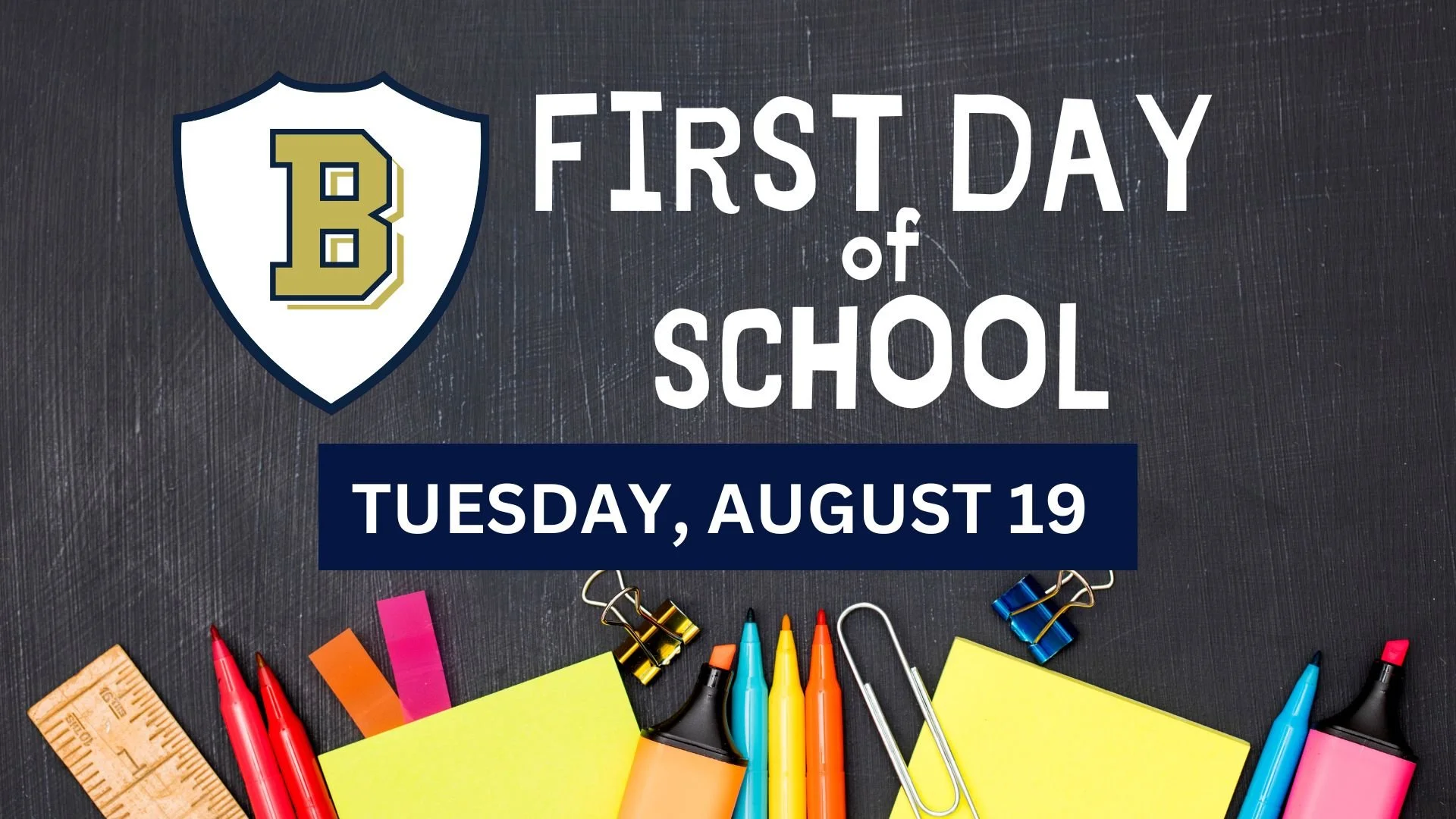 Tuesday, August 19 – BCS Spirit Day (wear your new BCS t-shirt, a favorite BCS shirt, or BCS colors)