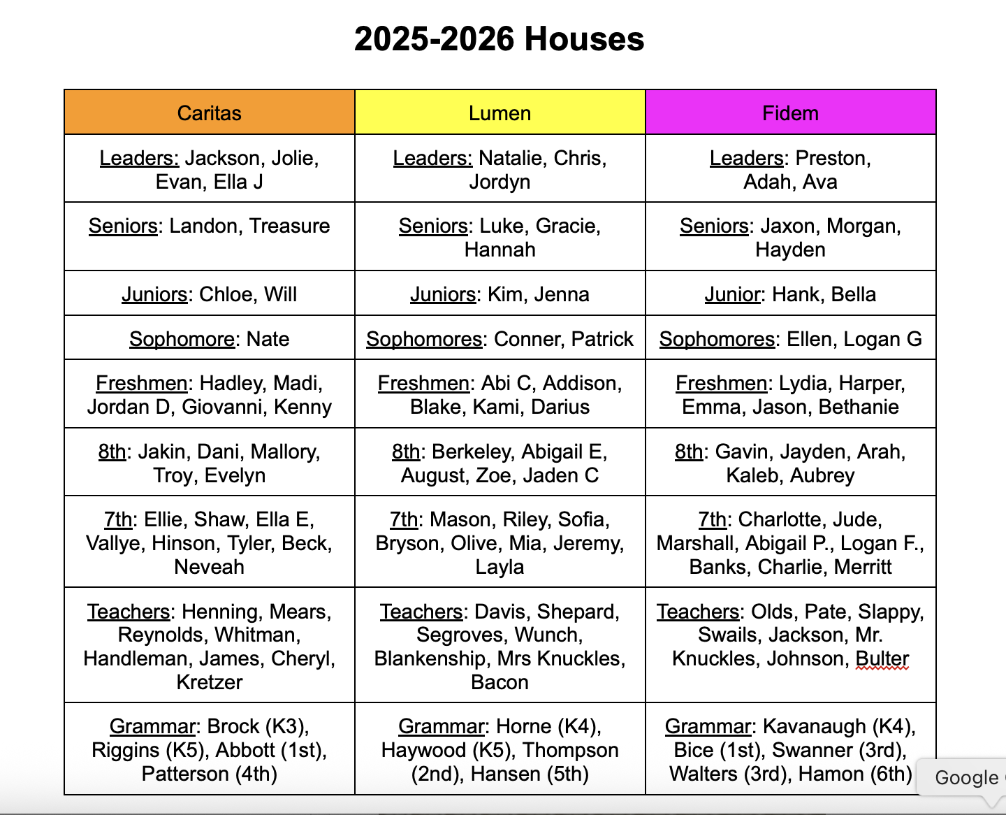 Wednesday, August 20 – House Colors Day (students represent their house by wearing their assigned color) - Find this at the bottom!